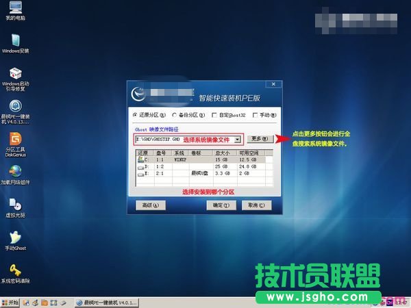 5、选择拷贝好在U盘里面的系统,然后在选择将系统安装都C盘后点确定;