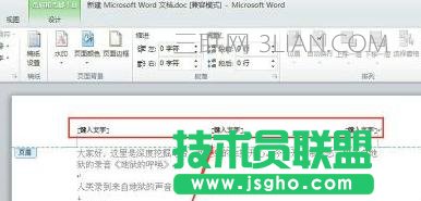 用鼠标双击页眉区域,使页眉成为焦点事件,如下图所示。