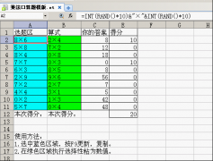 以表内乘法口算为例,教大家用WPS表格制作自动出题计分的口算题模板,教程非常的简单,用公式就能轻松的搞定。 一、随机生成口算题。 如图1,在A2格输入:=INT(RAND()*10)INT(RAND()*10)。 解释一下:RAND()表示随机生成介于0至1的小数。 RAND()*10表示用随机生成的0至1之间