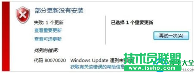 Win7系统更新失败提示错误代码80070020怎么办?